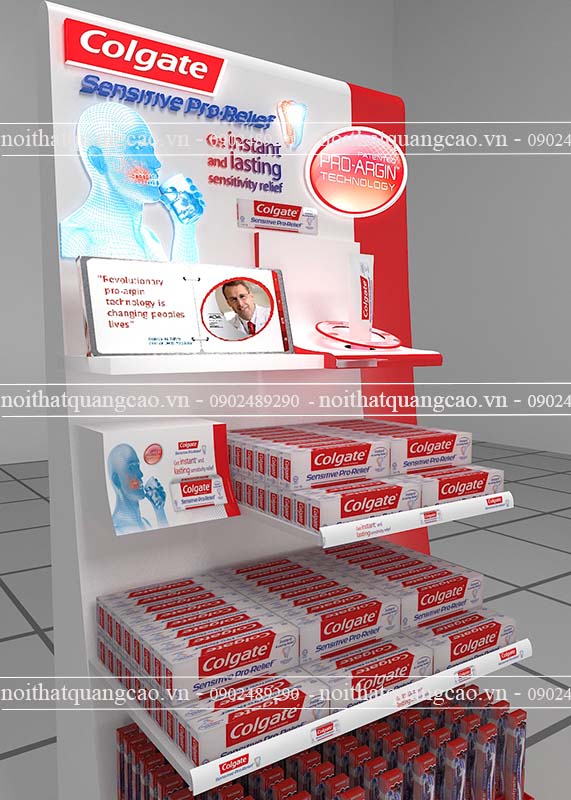 Với dòng sản phẩm sữa, chúng tôi giới thiệu đến mẫu kệ trưng bày sản phẩm kem đánh răng Colgate thật ấn tượng.